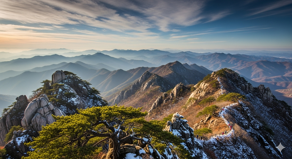 산청 여행의 백미는 단연 지리산입니다. 전국 등산객들의 버킷리스트 1순위로 꼽히는 '지리산 천왕봉~중산리 코스'는 숨이 턱 끝까지 차오르는 고된 산행이지만, 정상에 올라 마주하는 장엄한 운해와 파노라마처럼 펼쳐지는 풍경은 그 모든 힘듦을 잊게 할 만큼 황홀한 감동을 선사합니다.