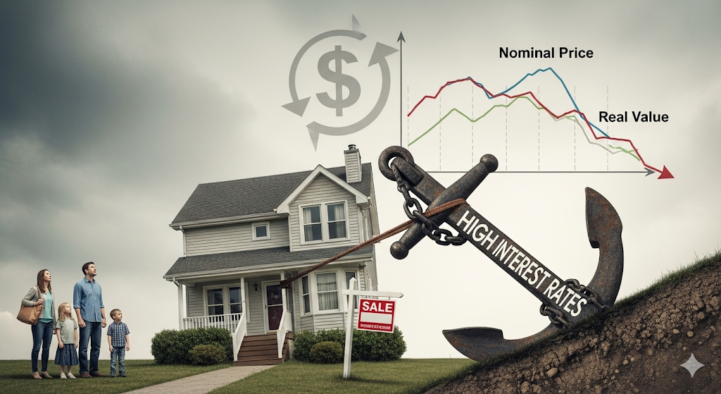 이것이 핵심입니다. 1년 전과 비교했을 때, 실질적인 주택 가치는 오히려 떨어졌다는 의미입니다.
