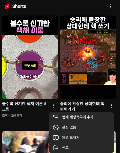 쇼츠 시청 기록을 주기적으로 삭제하면 추천 알고리즘의 초기화에 도움이 됩니다.