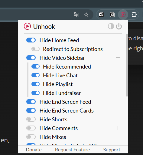- 2PC에서는 'Unhook' 확장 프로그램을 사용하는 것이 가장 확실한 차단 방법입니다.
